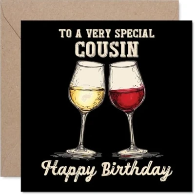 Cousin Birthday Card Bday Wine Happy for from Family Relative, 145mm Greeting Cards