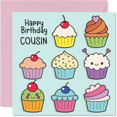 Cousin Birthday Card Cupcakes Happy for from Relative, 145mm Fairy Cake Baking Bday Greeting Cards