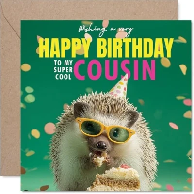 Cousin Birthday Card Spike tacular Cake Happy for from Family Relative, 145mm funny hedgehog Bday Greeting Cards
