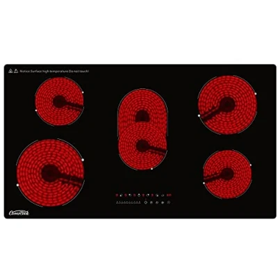 COVERCOOK 90cm Ceramic Hob, 5 Zones Hot Plate Burners Built in Electric Cooktop with Dual Oval Zone, 8400W Touch Control Child Lock 9 Power Level