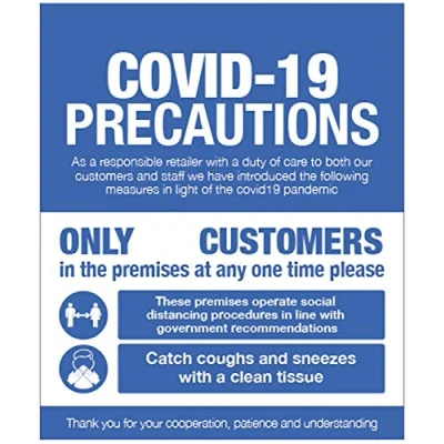 COVID 19 Precautions Shop window sign Self Adhesive Vinyl Sticker (300x400mm)