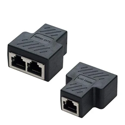 COVVY RJ45 Splitter Connector Female to Network Adapter 1 2 Port CAT 5/CAT 6 LAN Ethernet Cable Dual Socket (2 Pcs, black)
