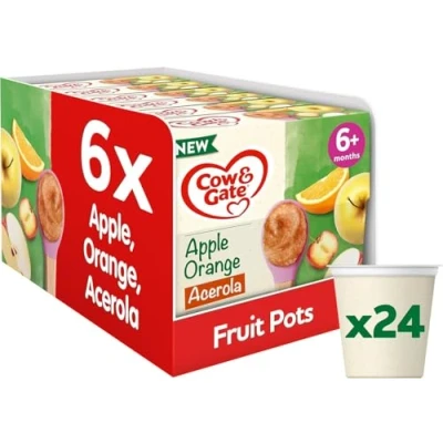 Cow & Gate Apple Orange Acerola Baby Food Fruit Pot Multipack, 6+ Months, 100g (24 Pots)