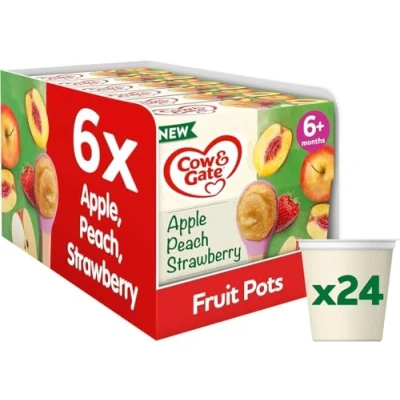 Cow & Gate Apple Peach Strawberry Baby Food Fruit Pot Multipack, 6+ Months, 100g (24 Pots)