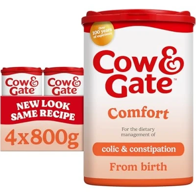 Cow & Gate Comfort Baby Milk Powder Formula, from Birth, 800 g (Pack of 4)