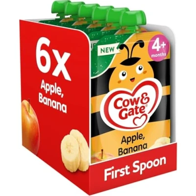 Cow & Gate Fruit Pouch Apple Banana Baby Food Snacks, 4+ Months, 100g (Pack of 6)