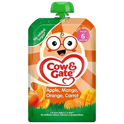 Boots3 Advantage card points. Cow & Gate Fruit Pouch Apple Mango Orange & Carrot Baby Food 6 Plus Months FREE Delivery on orders over 45 GBP.