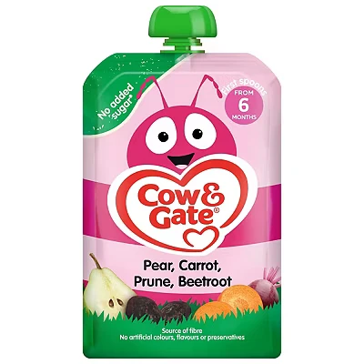 Boots3 Advantage card points. Cow & Gate Fruit Pouch Pear Carrot Prune & Beetroot Baby Food 6 Plus Months FREE Delivery on orders over 45 GBP.