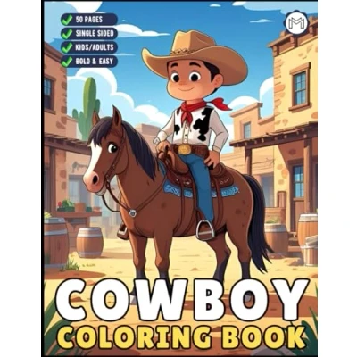 Cowboy Coloring Book Gift for Adults Men Women Kids Young Boys Girls Teens Cute Children 50 Pages Single Sided Western ... Sheets Stress Relief Relaxation