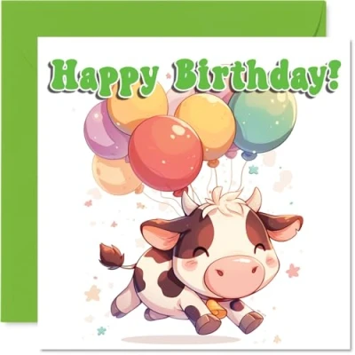 Cows Birthday Card Balloon Animals Happy Cards for Son Daughter Brother Sister Grandson Granddaughter Niece Nephew Cousin, 145mm Bday Greeting