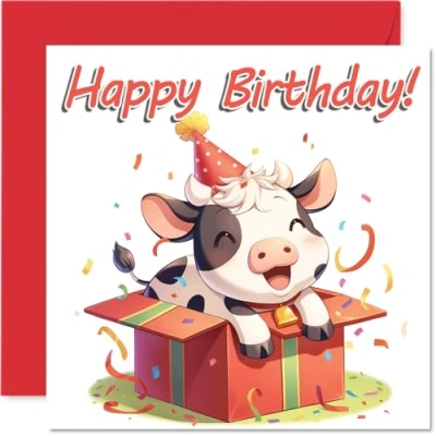 Cows Birthday Cards Animal Gifts Happy Card for Son Daughter Brother Sister Grandson Granddaughter Niece Nephew Cousin, 145mm Bday Greeting