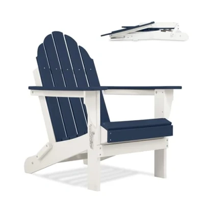 COWVIE HDPE Outdoor All Weather Folding Adirondack Chair for Patio, Garden, Backyard, Lawn, Fire Pit, Navy Blue