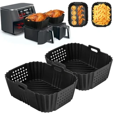 Perfectly adapted size & multiple compatibility: 19 x 14 x 7 cm (L x W x H) - Specially designed for Ninja Double Stack XL 9.5L (SL400UK). Fits AF300UK/AF400UK, Cookwise/Emerio 9L, Stillstern/Balter HL-900-8L (measurement recommended before purchase). Double-sided design for optimal performance: double-sided handles & air channels: easy insertion without twisting, improved air circulation for crispy results.Heat protection handles prevent burns - ideal for air fryer silicone accessories. Premium silicone safe and durable: 100% BPA-free, food-safe, heat-resistant up to 205°C - perfect for baking, grilling and roasting. Non-stick and water-repellent: guaranteed healthy preparation without harmful substances. Durable, easy to clean and cost-effective: dishwasher safe or washable with 1 hand - hot air fryer accessories for stress-free care. Reusable: saves money and reduces disposable waste. All-in-one kitchen aid: multifunctional: roasting, baking, grilling - from chips to casseroles (casserole dish Airfryer). Replaces baking paper and foils - the most versatile air fryer accessory for any kitchen!, Manufacturer: Cozary