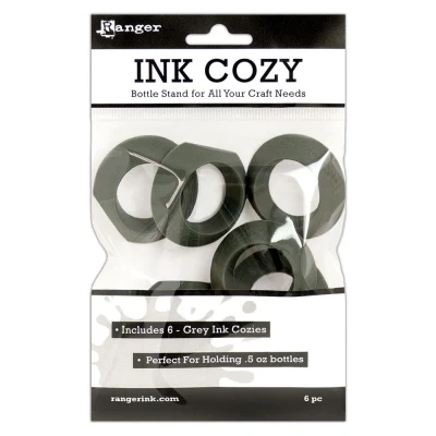 6 Pack (Includes 6 Gray Cozies) Ranger Brands - Tools and Accessories The Ranger Ink Cozy is the perfect workspace addition for any crafter. Designed to securely hold .5 oz bottles, the silicone cozy has a cone shape with a flat bottom that holds your bottles in an upright position to avoid unwanted accidental spills. The cut edge makes the cozy ideal for storing paints and mediums on their sides to establish a continuous flow to the tip of the bottle for quick use. The Ranger Ink Cozy works perfectly with Tim Holtz Alcohol Inks and Mixatives, Stickles, Liquid Pearls, and more. Available in 6-pack of grey cozies, POP Globe display of 40, including four assorted colors, and four refill packs of 10 in turquoise, lime, magenta, and grey. INK66811 MPN INK66811