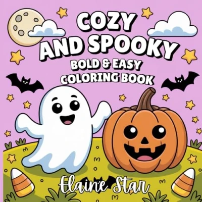 Cozy and Spooky Coloring Book: Bold Easy Cute Designs for Adults Teens Featuring Adorable Creepy Creatures Lovely Haunted Scenes Relaxation