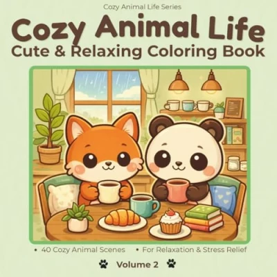 Cozy Animal Life Coloring Book: 40 Cute & Relaxing Café Scenes Book for Adults Teens (Volume 2)