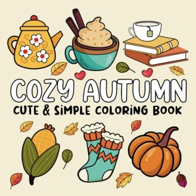 Cozy Autumn Coloring Book: Bold and Easy, Cute Simple Pictures for Adults Teens, Inspired Fall Designs Stress Relief Relaxation