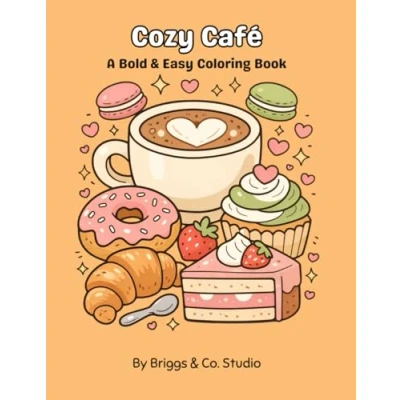Cozy Café Coloring Book: Bold and Easy Book for Adults Featuring Coffee, Pastries, Desserts, Cute Scenes, Stress Relief & Relaxation