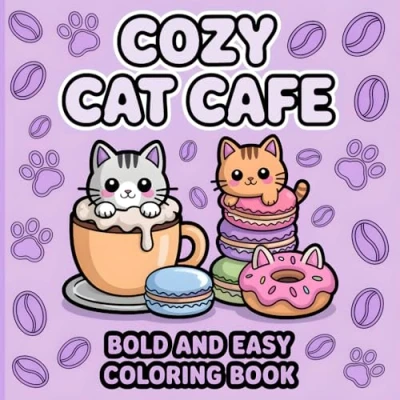 Cozy Cat Cafe Bold & Easy Coloring Book: Kawaii Cats, Cute Café Treats and Simple Designs for Kids Adults