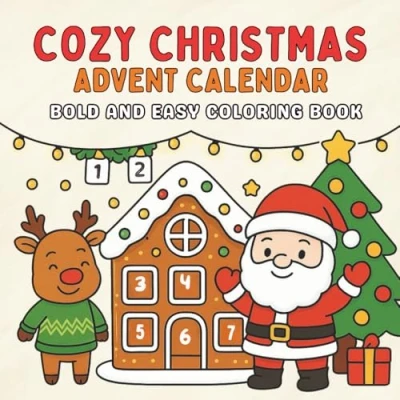 Cozy Christmas Advent Calendar: 24 Bold and Easy Coloring book for Adults, Teens, Seniors with Simple Relaxing Holiday Designs