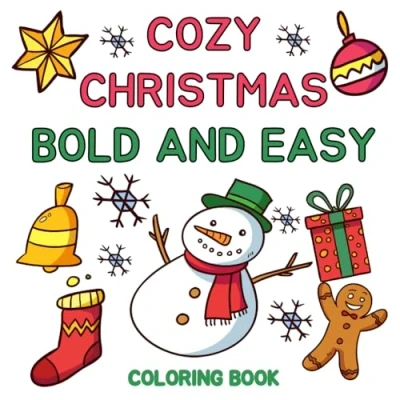 Cozy Christmas Bold and Easy Coloring Book: 50 Simple Cute Designs for Kids, Teens, Adults, Featuring Relaxation Stress Relief