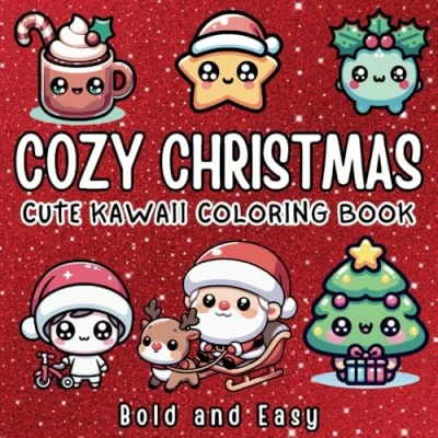 Cozy Christmas Cute Kawaii: Bold and Easy Coloring Book for Adults Children
