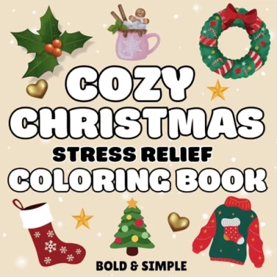 Cozy Christmas Stress Relief Coloring Book Bold & Simple: and Easy Designs for Adults Teens