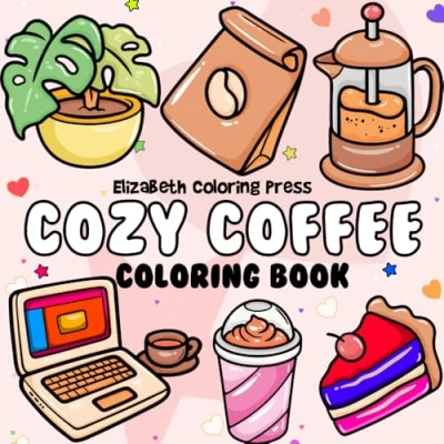 Cozy Coffee Coloring Book: Bold And Simple Designs for Adults Kids featuring Cake, Ice Cream, Milk, More Perfect Gift