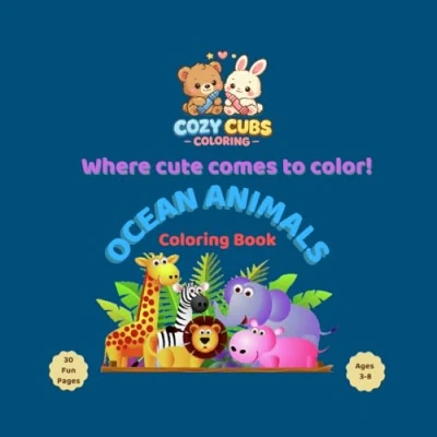 Cozy Cubs Coloring: Ocean Animals: Cute and Easy Coloring Book for Kids Ages 3 8
