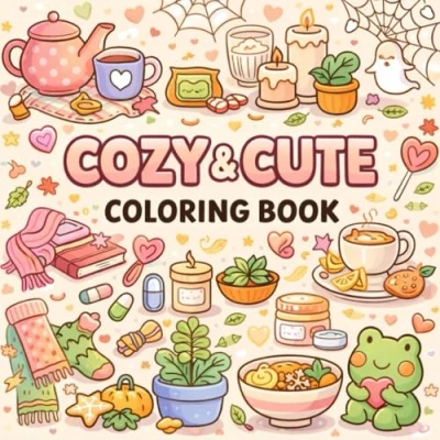 Cozy & Cute Coloring Book: Bold Easy Illustrations for Relaxation, Stress Relief Vibes
