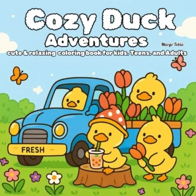 Cozy Duck Adventures: cute and relaxing coloring book for kids teens adults