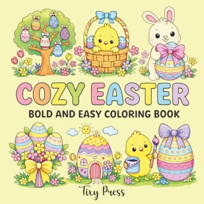 Cozy Easter Bold and Easy Coloring Book: Cute Spring Pages with Bunnies, Chicks, Eggs Simple Relaxing Designs for Kids, Teens, Adults