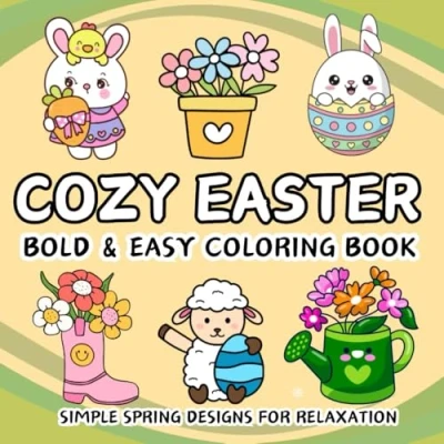 Cozy Easter Bold & Easy Coloring Book: Cute Simple Spring Designs for Relaxation Adults, Teens Kids