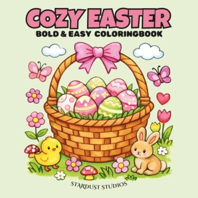 Cozy Easter: Bold & Easy Coloringbook: Cute Bunnies, Chicks, Eggs Spring Scenes for Relaxation and Stress Relief Easter Coloring Pages