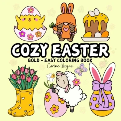 Cozy Easter Coloring Book Bold and Easy: Simple,Cute Groovy Big Designs Featuring Spring for Relaxation & Stress Relief Adults Kids (Bold Easy Coloring)