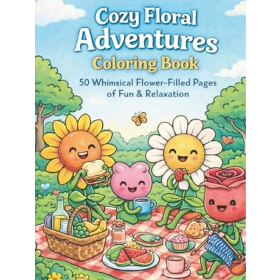 Cozy Floral Adventures Coloring Book: 50 Whimsical Flower Filled Pages of Fun & Relaxation: Single Sided with Gentle Illustrations for Calm, Creative