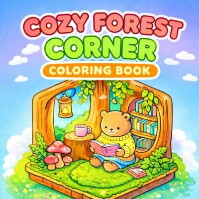 Cozy Forest Corner Coloring Book: 40 Cute Animal Pages in Hygge Bold and Easy Style for Nature Lovers