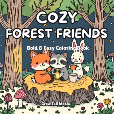 Cozy Forest Friends: Stress Relief Coloring with Cute Woodland Animals & Bold Kawaii Designs (Bold Easy Animals)