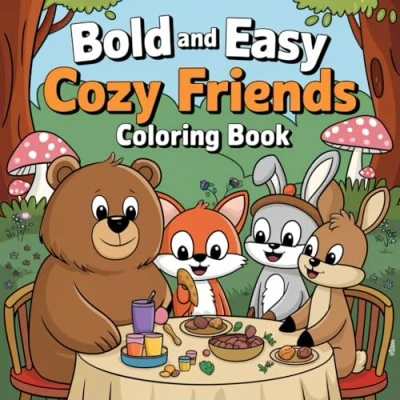 Cozy Friends: Bold and Easy Coloring Book: 40+ Simple Cute Animal Designs for Adults teens relaxation