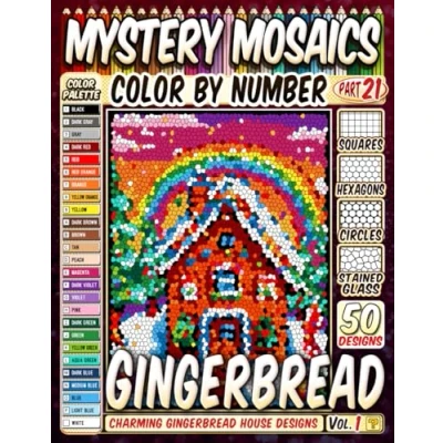 Cozy Gingerbread Houses Mystery Mosaic Color by Number: 50 Charming House Designs in Squares, Hexagons, Stained Glass, and Circles (Christmas Coloring)