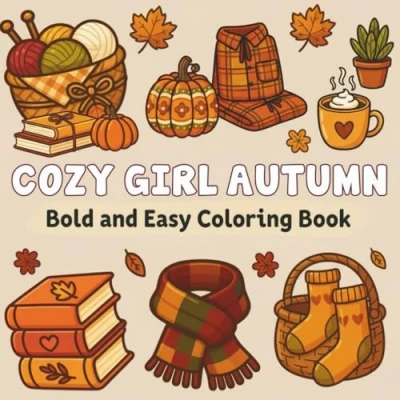 Cozy Girl Autumn Bold and Easy Coloring Book: A Relaxing Fall Book with Vibes, Feminine Items, Cute Animals, ... Teens (Bold & Collection)