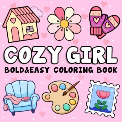 Cozy Girl: Bold and Easy Coloring Book for Adults Kids with Simple, Cute Illustrations Relaxation Stress Relief