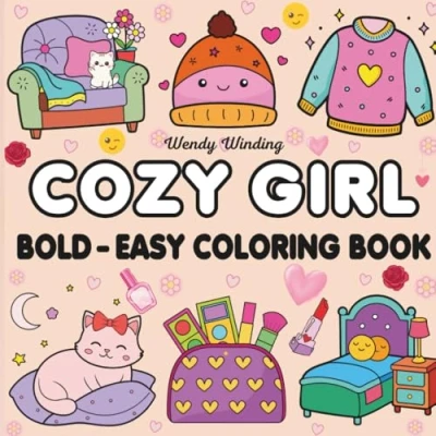 COZY GIRL Bold Easy Coloring book: Cute & Simple Book Designs for Relaxation — Adorable, Stress Free Pages Adults Teens