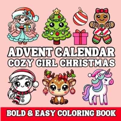 Cozy Girl Christmas Advent Calendar Coloring Book: 25 Bold & Easy, Cute Designs for Holiday Fun