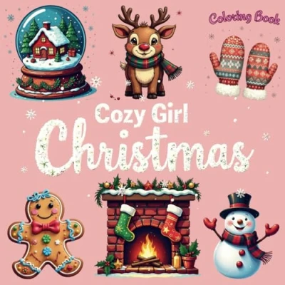 Cozy Girl Christmas: Cutie Coloring Book: Adorable Xmas Designs for Stress Free Colouring Bold and Easy Fun Adults, Teens, Women, Perfect as Stocking Filler Gifts