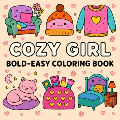 Cozy Girl Coloring book: 50+ Simple, Cute, Bold and Easy Illustrations for Adults Teens — Featuring Relaxation Stress Relief Scenes with Outfits, Comfy Rooms, Hygge Vibes