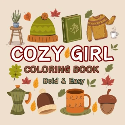 Cozy Girl Coloring Book: Bold and Easy, Cute Designs for Teens Adults with Thick Lines. Simple, Hygge Inspired Illustrations