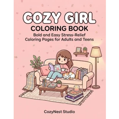 Cozy girl coloring book: Bold and easy stress relief pages for adults teens