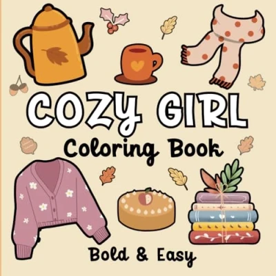 Cozy Girl Coloring Book: Bold & Easy Hygge Designs for Adults and Teens Cute, Simple Illustrations with Thick Lines Relaxation Fun.(Bold Coloring) (Cute