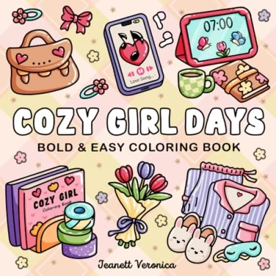 Cozy Girl Days: Bold & Easy Coloring Book for Adults and Teens Simple, Cute Illustrations Relaxation Hygge (Cozy Series)